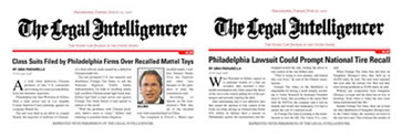 When we filed a class action lawsuit against Mattel to force the toy manufacturer to pay for testing of children at risk of lead poisoning from its toys, The Legal Intelligencer again featured The Killino Firm, as its top news story because our case was the news. We make the news because we are dedicated to assuring that our clients, and every American, can feel safe and secure when buying tires, playing with toys, and using the many items we take for granted in our daily lives. Read the full Legal Intelligencerstory.